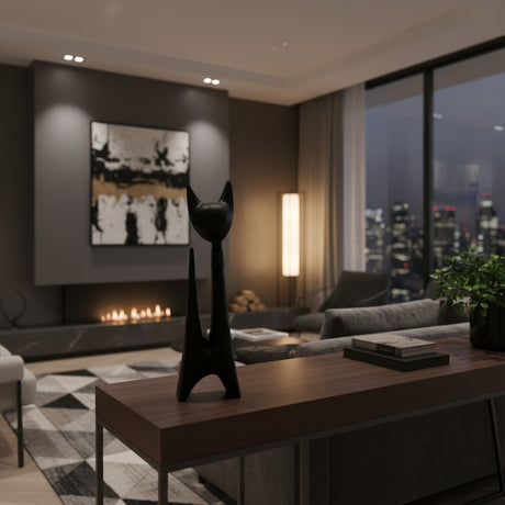 WOODEN CAT WITH NECKLACE MEDIUM | BLACK