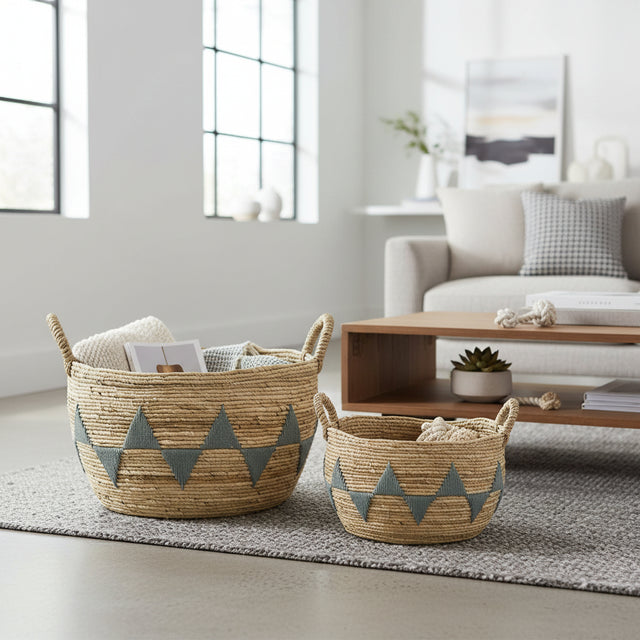 Introduce timeless charm and functionality into your space with these beautifully handwoven decorative baskets. Crafted from natural fibers, these baskets combine artisanal skill with eco-friendly materials, making them both stylish and sustainable. Featuring intricate patterned designs on the exterior, these baskets are a versatile addition to any home, serving both practical and decorative purposes.