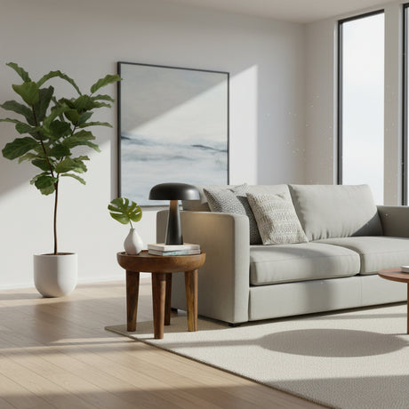 Post Coffee Table | Natural Finish, made from stained teak wood with bottom storage
