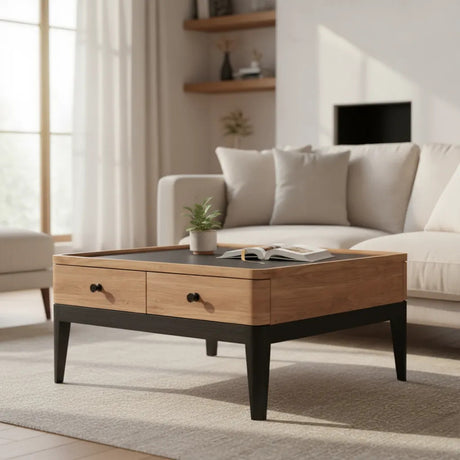 2 Drawer Coffee Table | Acacia Wood 80x80x40cm