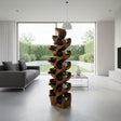 A striking blend of form and function, these handcrafted bottle racks are carved from solid wood and shaped with flowing, wave-like slots to cradle bottles horizontally. Their tiered heights and rich grain patterns create a dynamic visual rhythm, making them ideal for both display and storage in luxury interiors.