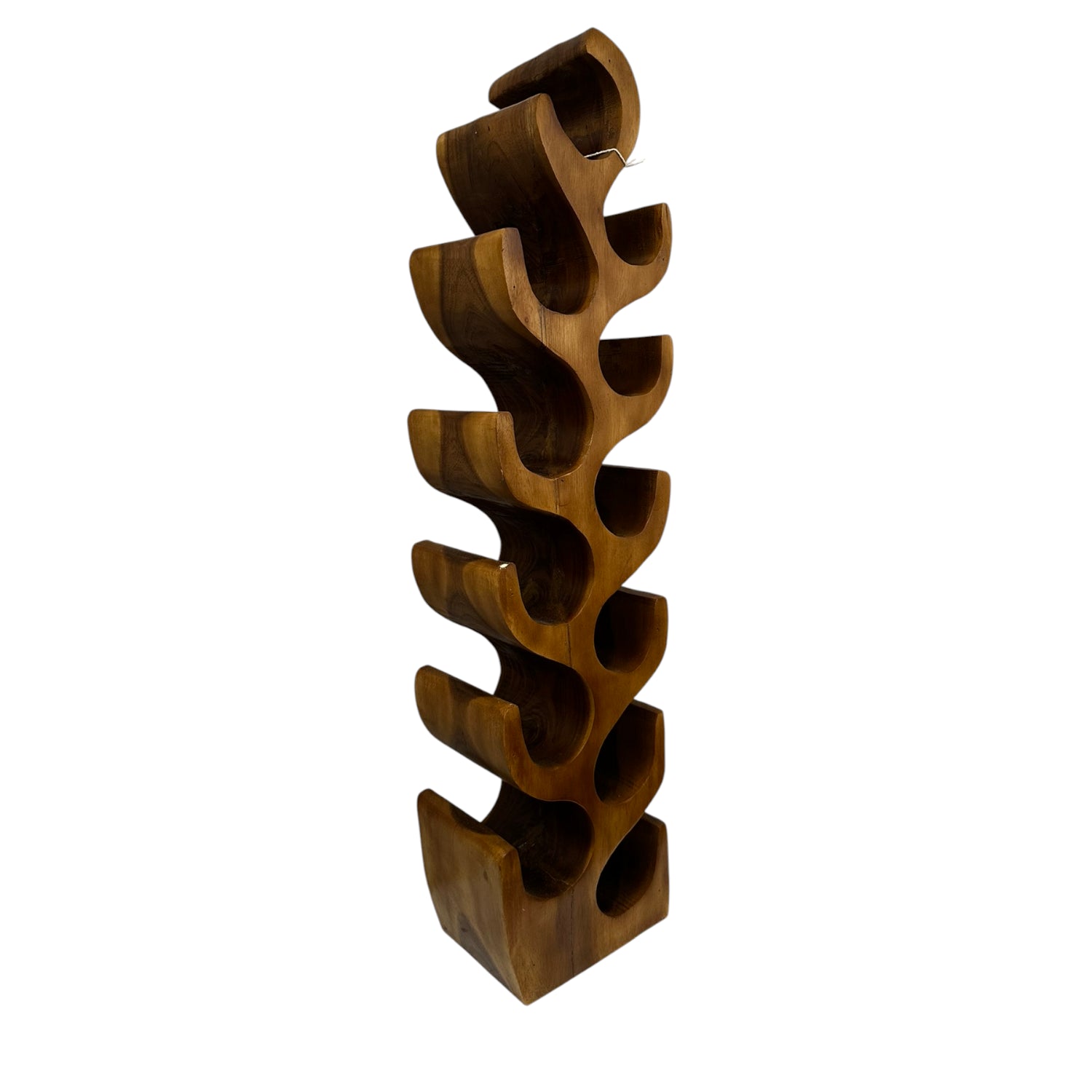 Sculptural Wooden Bottle Rack – Wave Slot Design