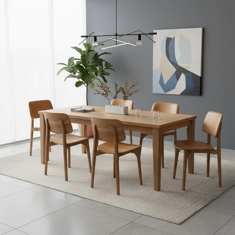 Kursi Robot Natural Wooden Dining Chair | Genuine Leather, Cognac