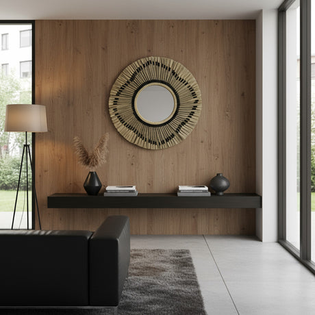 Natural Frame Mirror | Black, Patterned 70cm