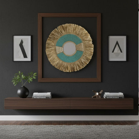 Natural Frame Mirror | Beaded Turquoise , Woven 70cm