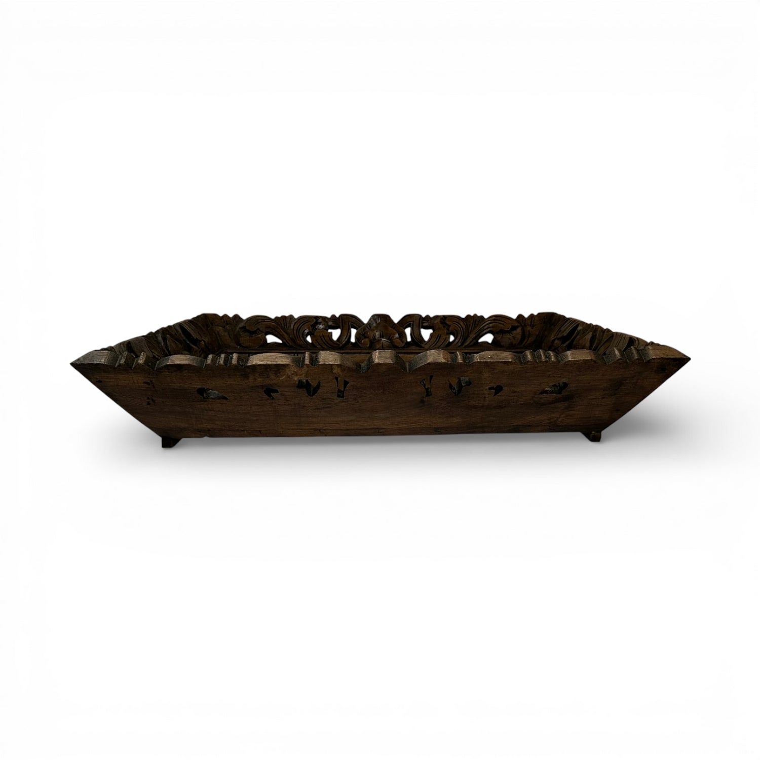 Elevate your hosting ritual with this artisanal wooden tray, meticulously hand-carved to showcase timeless craftsmanship. The slatted base offers a rustic foundation, while the ornate scrollwork along the raised edges adds a touch of heritage elegance. Whether styled as a centerpiece or used for serving, this tray blends functionality with decorative charm, perfect for curated spaces that celebrate natural textures and refined detail.
