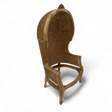 This regal dome chair frame is a sculptural masterpiece that blends historical elegance with artisanal detail. Crafted from solid wood and adorned with intricate carvings, it features a high, rounded back that curves into a semi-enclosed dome, offering both visual drama and a sense of privacy. Woven rattan panels add texture and warmth, while the ornate legs and armrests reflect timeless craftsmanship.