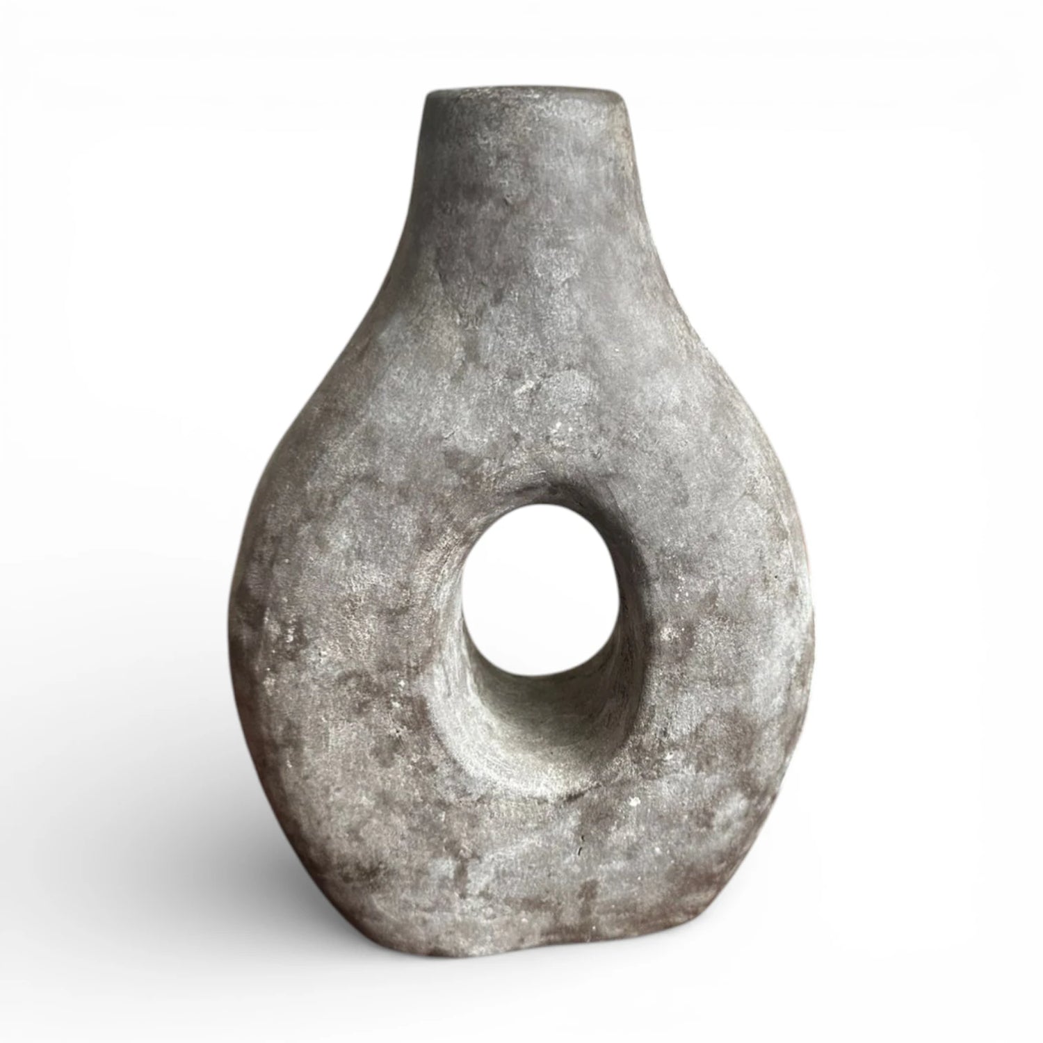 The Aura Sculpted terracotta Vase is a refined decorative piece designed to bring elegance and modern simplicity to any interior. With its soft curves and distinctive oval cut-out center, this vase creates a sculptural statement while maintaining a minimalist aesthetic. The textured ceramic finish and earthy tones make it a perfect complement to contemporary, natural, and luxury interior spaces.