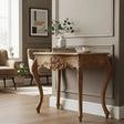 Engraved Console with Fleur-de-lis | Natural is backordered and will ship as soon as it is back in stock.