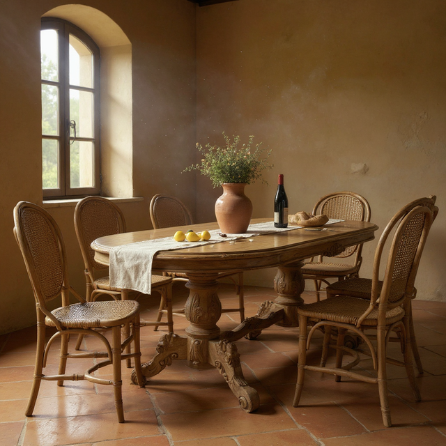 Bring timeless elegance to your dining space with this beautifully handcrafted wooden dining table. Featuring a natural wood finish and intricate carved detailing along the edges and pedestal legs, this table combines classic charm with durability. Its elongated oval shape provides ample seating, making it perfect for family meals or special gatherings. Designed to be both functional and stylish, this piece is a stunning centerpiece for any traditional or rustic-inspired home.